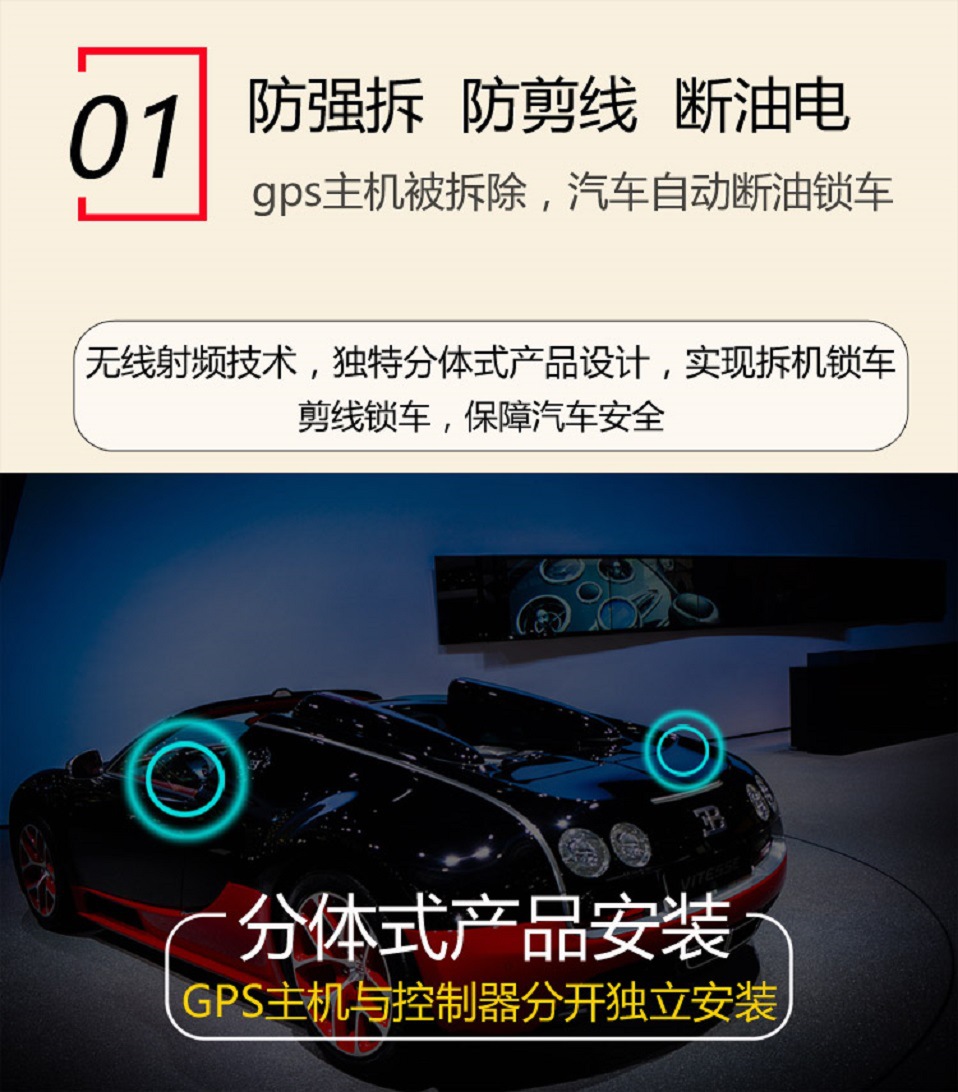 4、防扫描、防探测:超小型,拇指头大小,伪装型,嵌入式安装,原车配件化,扫描仪、探测器统统找不到,GPS+LBS双模定位,室内室外均可定位,定位无死角。